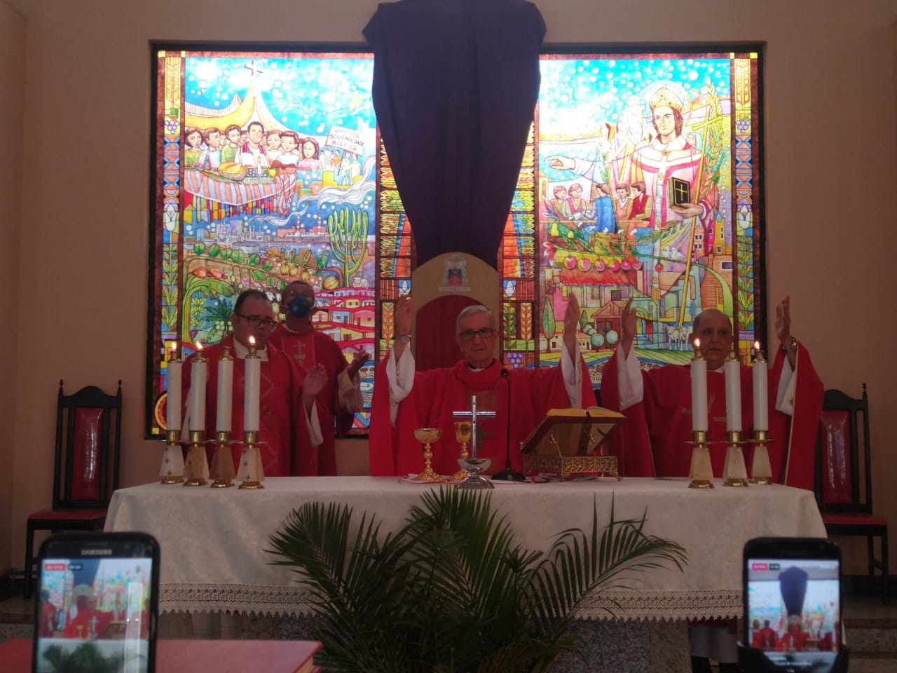 A Semana Santa deste ano iniciou diferente, com os bancos vazios mas com o coração repleto de esperança, foi celebrada na manhã deste domingo (05/04) a Missa do Domingo de Ramos e Paixão do Senhor, momento que recorda a entrada de Jesus em Jerusalém sendo aclamado pelo povo com Rei dos Judeus. A Celebração foi presidida pelo bispo diocesano Dom João Carlos Petrini e concelebrada pelos Cônego Osmar Júnior e Cônego Domingos na Catedral São Thomaz de Cantuária. Em virtude da pandemia do coronavírus a Missa foi acompanhada pelos fiéis através ao vivo pelas Redes Sociais da Diocese de Camaçari e da Catedral.