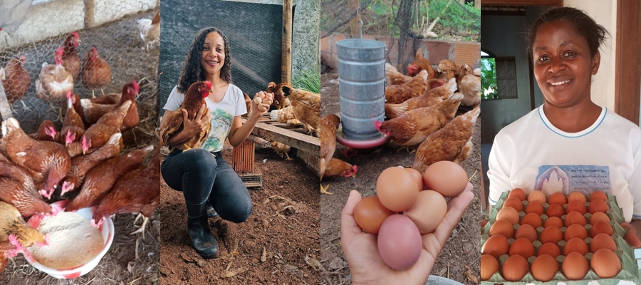 Outro resultado positivo, a partir da criação de aves, é o de Dileusa Sousa Silva Costa, da Comunidade de Cova da Negra, em Castro Alves, que agarrou a oportunidade, dobrou a quantidade de aves, de 25 para 50, e já colhe os frutos desse trabalho: duas dúzias de ovos por dia, viabilizando a comercialização e, consequentemente, a renda.