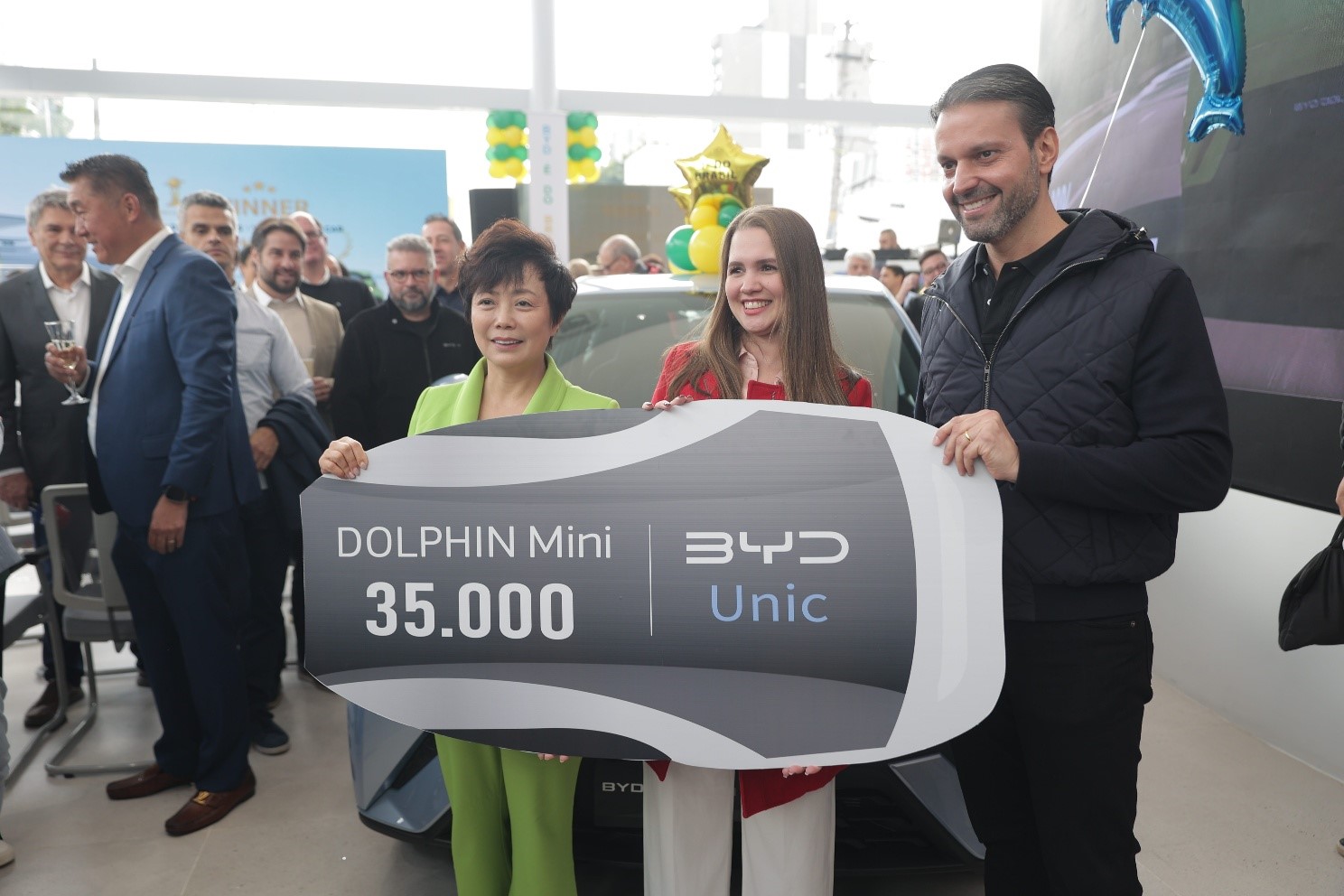 A entrega ocorreu durante o evento oficial de inauguração da loja, com a presença da CEO da BYD Américas e Europa e vice-presidente executiva global da BYD, Stella Li e de Alexandre Baldy, além de outros executivos da marca, influenciadores, jornalistas e clientes.
